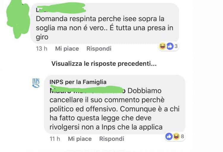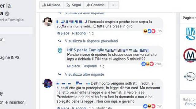 “Basta richiederlo a Poste o Inps, o è troppo impegnata a farsi i selfie con le orecchie da coniglio?”. Sembra un fake, e invece la risposta viene direttamente dal sito ufficiale “Inps per le famiglie”.